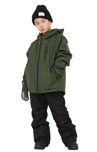 スノーボードウェア キッズ ジュニア 女の子 男の子 上下セット 超撥水YUK サイズ調節可 子供 耐水圧10000mm 撥水加工 ユック スキーウエア スノボ スノーウェア【yk25wi299bwc】 160cm カーキ/ブラック 高価買取中