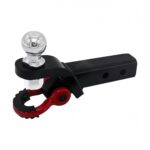 Zekonoトレーラーヒッチマウントは、赤いシャックルと黒のトレーラーアームを備え、2インチボールジョイントが付属。2レシーバー対応のヘビーデューティ多機能です。