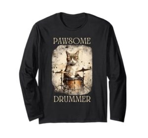 すごいドラマー猫 ドラムを叩くミュージシャン パーカッション 長袖Tシャツ