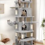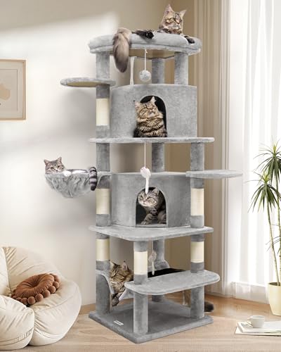 Globlazer キャットタワー 据え置き 省スペース 猫タワー 大型猫用 多頭飼いに適しています 転倒防止ストラップ 上部の見晴台 2つの湾曲したキャットハウス 特大ハンモック 柔らかい吊り下げバスケット 天然麻紐 爪とぎ ぬいぐるみのネズミのおもちゃ 安定した構造 簡単に登れる 登るための複数のオープンプラットフォーム 高さ167 cm ライトグレー C66の製品情報