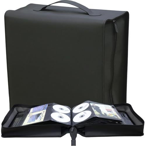 Salajory CD DVDストレージケース、ハンドル付きDVD収納バッグ、PUカバーDVDストレージバインダー ブルーレイ映画音楽オーディオディスク用 – ディスクユニット200枚&ブックルポケット100個の高価買取
