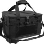 アウトドアキャンプ用品収納バッグ。大容量30Lの防水設計で、食器やキッチンセットを整理整頓。シンプルな自走式ハードボックスが特徴。