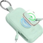 RORRYの5000mAhモバイルバッテリーは、iPhoneとType-Cケーブル内蔵。最大4台同時に充電可能で、Apple Watch全シリーズに対応。軽量・コンパクトで持ち運びに便利。PSE認証済み。