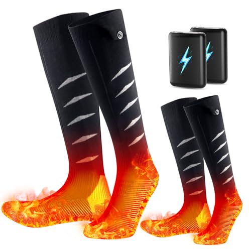 THEKUKU 電熱ソックスは、6000mAhバッテリー搭載でUSB充電式。4段階の温度調節が可能で、速暖性に優れた高伸縮性の靴下。登山やスキーに最適で、水洗い可。男女兼用、サイズ23~27cm適用の2足入り。