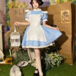 アリス ハロウィン衣装コスプレ。かわいい大人向けアリスコス3点セット。コスチュームはブルーのMサイズ。仮装やパーティーに最適です。