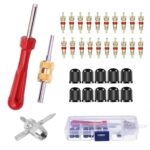 CHANJIF タイヤバルブコア33点セットは、タイヤ修理に必要なツールが揃った便利なキットです。耐久性に優れ、自動車・自転車・バイクに対応。虫回しドライバー、変換アダプター、エアバルブレンチが含まれ、タイヤのエアバルブ装着も簡単に行えます。