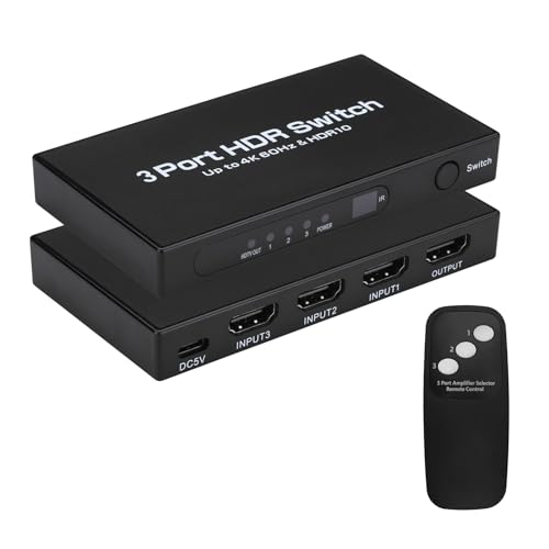 HDMI切替器 3入力1出力で4K@60Hz対応。手動切り替え、1080P、3D、HDCP2.2、HDRに対応。Apple TV、PS4、Nintendo Switchなどに最適。IRリモコンと日本語取扱説明書付き。