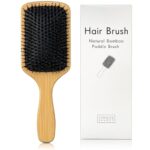 コモライフの竹製パドルヘアブラシは、頭皮マッサージ効果を持ち、ヘッドスパや頭皮ケアに最適です。木製のため髪質改善や抜毛対策に効果的で、ツヤのある髪を実現します。