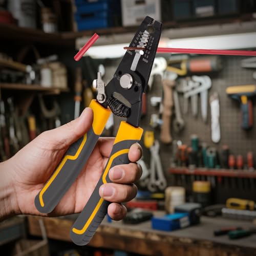 8インチのワイヤーストリッパーは、10-20AWG対応で、圧着・切断も可能。TPR製の快適グリップで使いやすい多目的ハンドツールです。