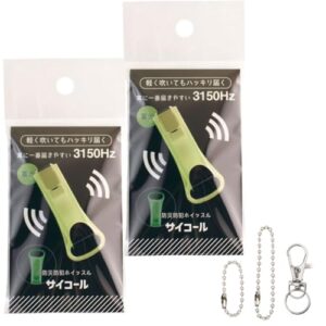 三和製作所の防災防犯ホイッスル「サイコール」は、蓄光機能付きで、暗闇でも見つけやすいです。紐とキャップが付属し、持ち運びやすく、緊急時に役立つアイテムです。