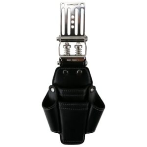 ニックスの腰袋(モデル:BABLT-102GBDX)は、EVAコーデュラバリスティック生地を使用し、チタンプレートで強化されています。底付きタイプで、工具の収納に便利なフリーサイズの2Pホルダー付き。カラーは青です。