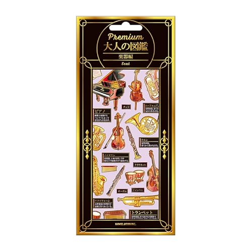 カミオジャパンのシール「PREMIUM大人の図鑑シール 楽器」は、高品質なデザインが特徴。楽器の美しいイラストが描かれ、大人向けのスタイリッシュな仕上がり。手帳やノートに最適です。