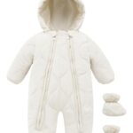 カバーオールワンピース、キッズ用ロンパース。秋冬に最適な裏起毛デザイン。可愛いフード付き、熊耳のデザイン。防風で厚手、幼児向け。男女兼用の赤ちゃん用ロンパース。カラーはホワイト、サイズ73。