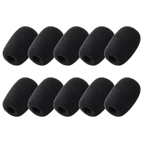 マイクスポンジ風防の10個セット。4サイズ対応で防風、防雑音、防噴射を実現。高密度防音素材使用。インカム、ヘッドセット、拡声器に対応。交換用ブラックカバー(27mm×17mm、内径6mm)。
