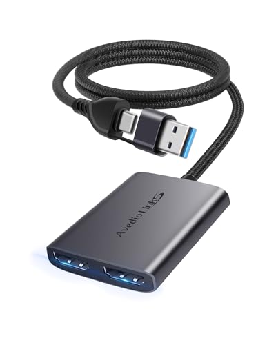 Avedio Links USB C/A HDMI変換アダプタ。デュアルモニター対応、3画面の拡張モード、60cmナイロンケーブル付き。Windows10/Mac OS 10.15対応、ドライバ必要。