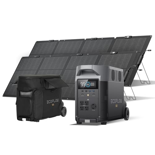 EcoFlow DELTA Proは3,600Whの大容量ポータブル電源で、220Wのソーラーパネル2枚セット。リン酸鉄リチウムイオン電池を使用し、急速充電と高出力を実現。防水防塵仕様で設置が簡単、角度調整可能な折りたたみ式。非常時用としても最適で、エコで節電にも貢献します。