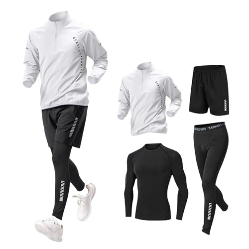 [ciciibear] コンプレッションウェア メンズ 長袖 4点セット スポーツウェア 上下セット トレーニングウェア ウォーキング サイクリング ジム 筋トレ 吸汗速乾 通気 (シンプル, 2#ホワイトセット, 2XL)の高価買取ITEM