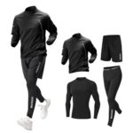 ciciibearのコンプレッションウェアは、メンズ長袖の4点セット。スポーツやトレーニングに最適で、吸汗速乾・通気性に優れています。ウォーキングやサイクリング、ジムでも活躍。シンプルなデザインでブラックセット、サイズはM。