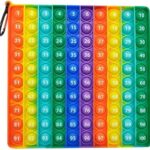 スプッシュポップの知育玩具。数字1~100と掛け算九九が両面印刷。英語アルファベットも学べる。ストレス解消や自閉症の緩和に最適なボードゲーム。防水素材でお風呂でも楽しめます。