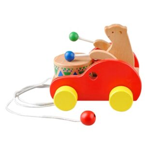 引っ張りおもちゃ 幼児用引きずり玩具 | 木製の小熊が太鼓を叩く子供用の乗り物 おもちゃの車両 | 歩行しながら引っ張るおもちゃ,男の子 女の子 就学前児童 デイケアセンター 室内遊び 誕生日 ホリデー プレイルーム ガーデン 公園 芝生用
