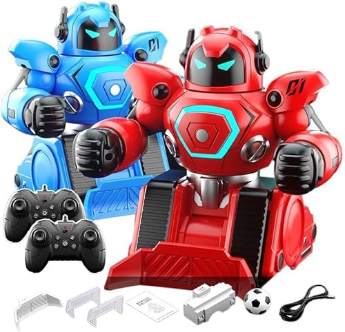 KKYOYRE 旋風ストライクバトルはUSB充電式のインタラクティブボクシングラジコンロボットセットです。青と赤の2台が含まれたフットボールファイティングおもちゃです。