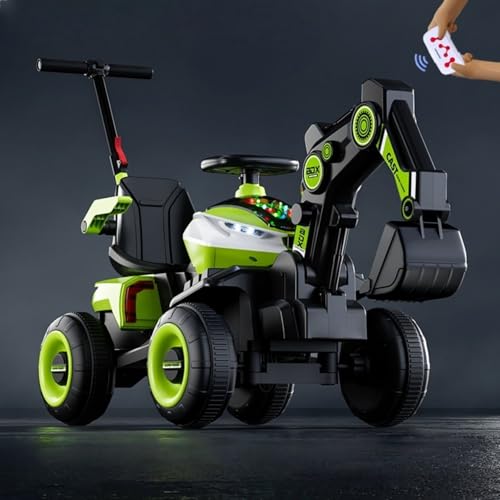 【Banefu】子供用電動掘削機、おもちゃの車、シートとリモコン付き PP素材 調節可能なガードレール 電源オフ保護機能 音楽とライト付き、多機能ステアリングホイール 1~6歳 積載量約50kg 早期教育啓発、さまざまな路面に適応、豊富 おしゃれ 乗り物 乗用玩具 男の子 女の子 公園/中庭/幼稚園、誕生日プレゼント (6V7A+リモコン+プッシュハンドル,グリーン) 高価買取中