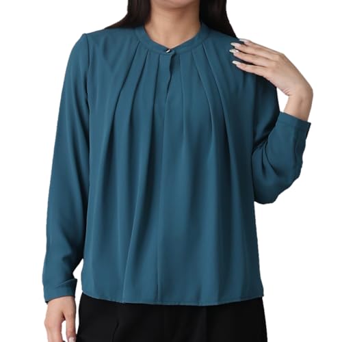 レディース ブラウス 長袖 ノーアイロン 透けない 形態安定 おしゃれ お仕事ブラウス バンドカラー オフィスカジュアル ビジネスカジュアル ビジカジ ブルーグリーンの製品情報