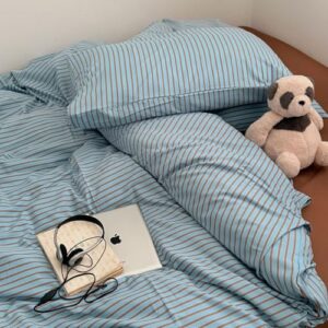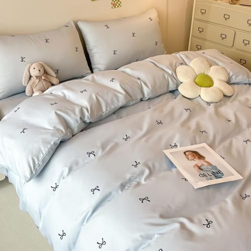Vskd 布団カバー 3点セット 4点セット 冷感 洗える シングル セミダブル ダブル 掛け布団カバー ボックスシーツ 枕カバー 防ダニ 速乾 肌触り良 和式 洋式 兼用 寝具 通年利用 ホテル風 自宅洗濯可能 寝室用 (シングル3点セット,ブルーリボン) [並行輸入品] 高価買取中