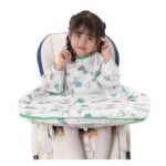 ポクミルの新登場お食事エプロンは、長袖一体型で撥水加工済み。離乳食の汚れを気にせず、洗濯機対応でお手入れも楽。フリーサイズで0~5歳児向け、かわいい緑の恐竜デザイン。