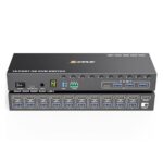 KCEVE HDMI KVM切替器は10入力1出力、4K@60Hz対応で、キーボード、マウス、モニターを10台のPCで共有できます。EDID機能搭載、Windows/Linux/Macシステムに互換性あり。手元スイッチ付き。