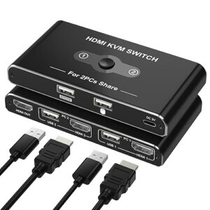 4K USB KVMスイッチ HDMI 4入力1出力。4台のPCを1台のモニタで共有可能。USB2.0ハブ、ワイヤレスキーボード・マウス対応。EDID管理、ドラバ不要、プラグアンドプレイ。