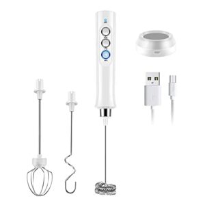 ハンドヘルド小型 ミニコーヒー攪拌機 ミルク泡立て器 電動牛乳 ステンレス製泡立て器 ハンドミキサー 卵ビーター ミルク ミニコーヒー攪拌機3段階スビード (ホワイト)