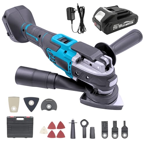 マキタ互換の18V充電式マルチツール。スターロックOIS対応、ブラシレスモーター搭載。振動数調整機能、集塵機能付き。LED作業ライトもあり、DIYに最適。バッテリー1個と充電器セット。