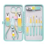 このマニキュアペディキュアキットは、ステンレス製のネイルクリッパーやハサミを含む12点セット。コンパクトで旅行に最適、折りたたみ袋付きで持ち運びも便利です。
