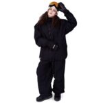 BOARDEEのゆうちゃみスノボウェアは、レディースの上下セットで、オーバーサイズシルエットが特徴。滑らかな動きと快適さを提供し、スキーやスノーボードに最適なデザインです。