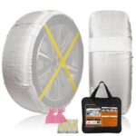 YOUTALLYスノーソックスは、軽自動車用非金属スノーチェーン。ジャッキアップ不要で簡単取り付け。適応タイヤサイズ:145R12、155/70R13など。軽量・静音設計で滑り止め効果あり。日本語取付説明書付き。