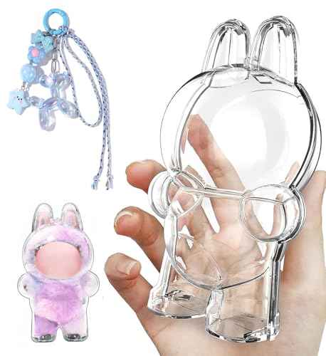 Cimoonの多彩な色クリアカバーは、立ち姿とお座り姿に対応し、薄型軽量で便利に携帯できます。収納・保護用で、落下や汚れ、紛失を防止。ストラップ付き、LABUBU用(ブルー-立ち姿)。