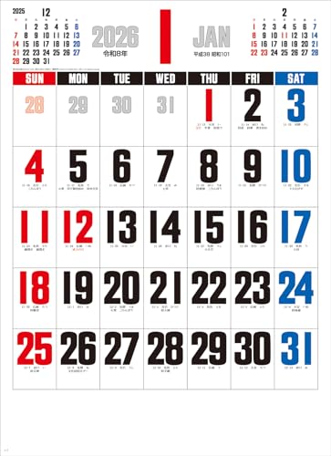 2026年1月始まり 壁掛カレンダー SG453 3色デラックス文字 2026年の高価買取