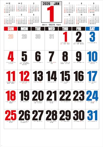 2026年1月始まり 壁掛カレンダー SG551 3色ジャンボ文字 年間予定表付 2026年の製品情報