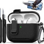 RFUNGUANGOのAirPods Pro 3ケースは、レザー製で耐衝撃性があり、傷にも強いブラックデザイン。キーチェーンと電話ホルダー付きで便利です。