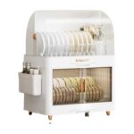 Rosoyの防塵カバー付き多機能キッチンディッシュラック。大容量で水切りかごとトレイが付属。簡単に組立て可能で、食器乾燥スタンドとしても使用できます。オフホワイトの4段タイプ。