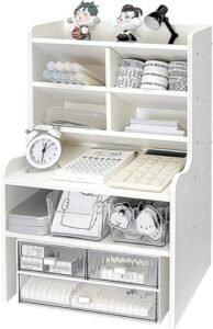 YURIBUG 多機能デスク収納ラック 50cm 引き出し付き 文房具 おしゃれ 卓上ペンスタンド 学生寮用 デスク上置き棚 収納ボックス 書籍 化粧品整理 (30cm)