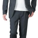 デニム&コットン調のスリムテーパードパンツ。ノータック、背抜き仕立てでストレッチ性もあり、上下洗えるオールシーズン対応。ポリエステル100%のメンズスーツ、カラーはネイビー(3204-88)。