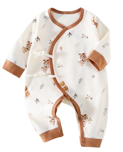 Hapipanaの新生児服は、可愛いベア柄のニットロンパース。肌着としても使用可能で、綿100%の素材。長袖で前開きデザイン、男女兼用。赤ちゃんを暖かく可愛く包みます。