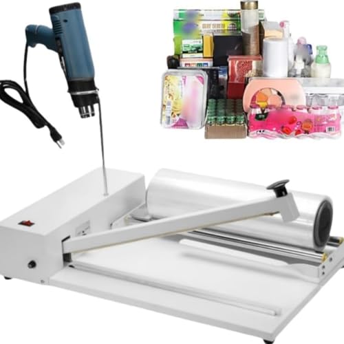 Askifozシュリンクラップマシンは1800Wの包装機で、ヒートガンとシュリンクラップ付き。9段階温度調整機能があり、PVC・POFフィルムビニール袋に対応(シール長さ30cm)。