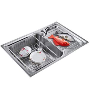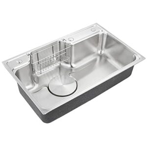 ERoomQ キッチンシンク、アンダーマウントシングルボウル 304ステンレススチールシンク 蛇口コンボとハンギングバスケット付き、ランドリーユーティリティシンク キッチンバス備品 アクセサリー付き(B 70x48cm)