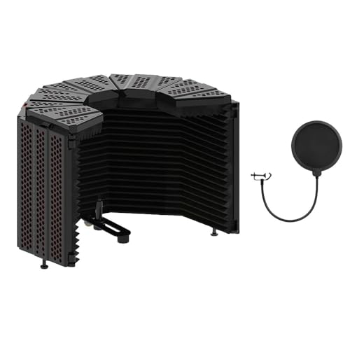 Klivexの防音エンクロージャは、高密度吸収性フォームを使用した五つ折りのリフレクションフィルターです。自宅やスタジオでの歌録音に最適で、騒音対策に効果的な折りたたみ式設計です。