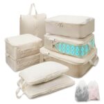 旅行用の圧縮ポーチ10点セット。大容量で、ファスナーがスムーズ。衣類の仕分けが簡単で、スペースを節約。出張や家族、温泉旅行に最適な便利グッズ。色はベージュ。
