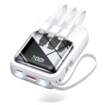 23600mAh大容量の軽量モバイルバッテリー。急速充電対応、4本ケーブル内蔵で5台同時充電可能。コンパクト設計で機内持ち込み可。旅行やアウトドアに最適。