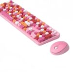 MLTUN MAKANのパンク風キーボードとマウスセット。104キーUSBポート、マルチメディアファンクションキー搭載。女性向けピンクカラーミックスデザイン。